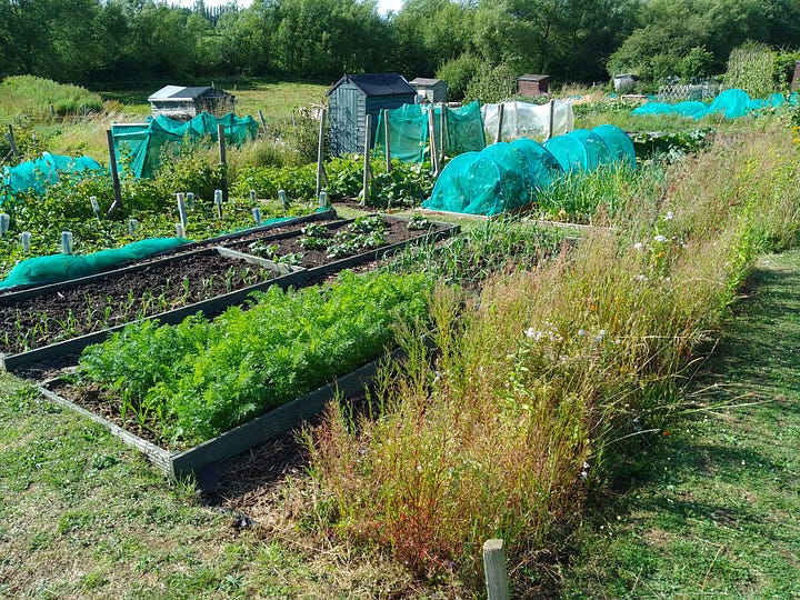 The British allotment. Picture green wellies (long rubber boots), squelchy mud, run-down sheds, and the abandoned plot next to yours where the only thing growing faster than the weeds is the sense of panic as the planting season draws to an end.