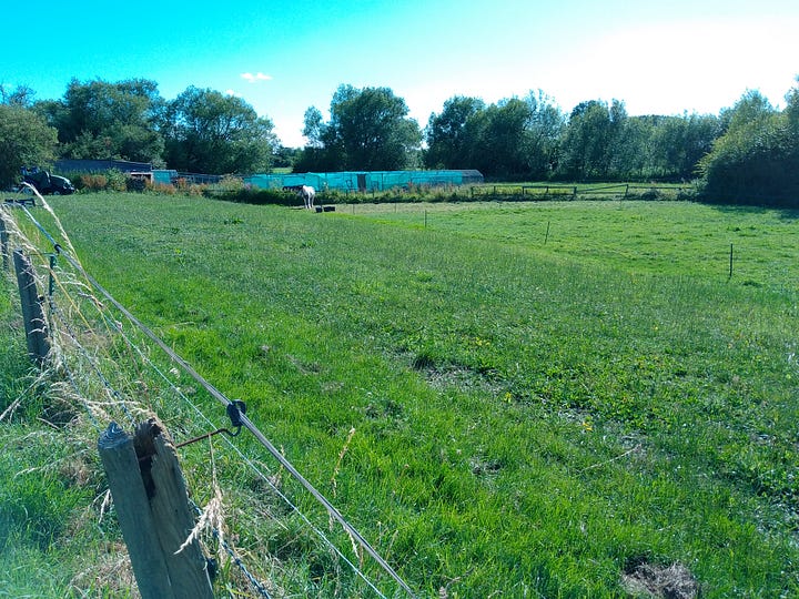 But it’s midsummer as I write this and the sun is shining (sometimes), the horses are grazing in the green lush field next door. The polytunnels, netted covers, and staked beds safe-guard well-kept greens, beans, and plump aubergines. All is good in the world.